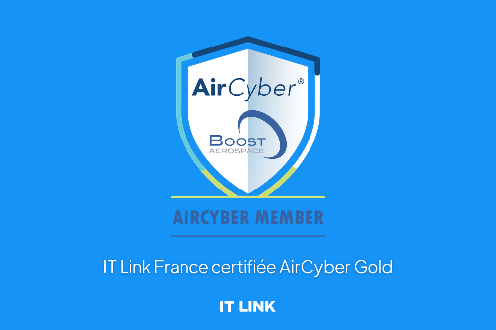 Après un audit rigoureux mené par BoostAeroSpace, IT Link France accède au niveau Gold de la certification AirCyber. Ce label atteste de la conformité de nos systèmes d’information aux exigences de sécurité de la filière aéronautique et défense.