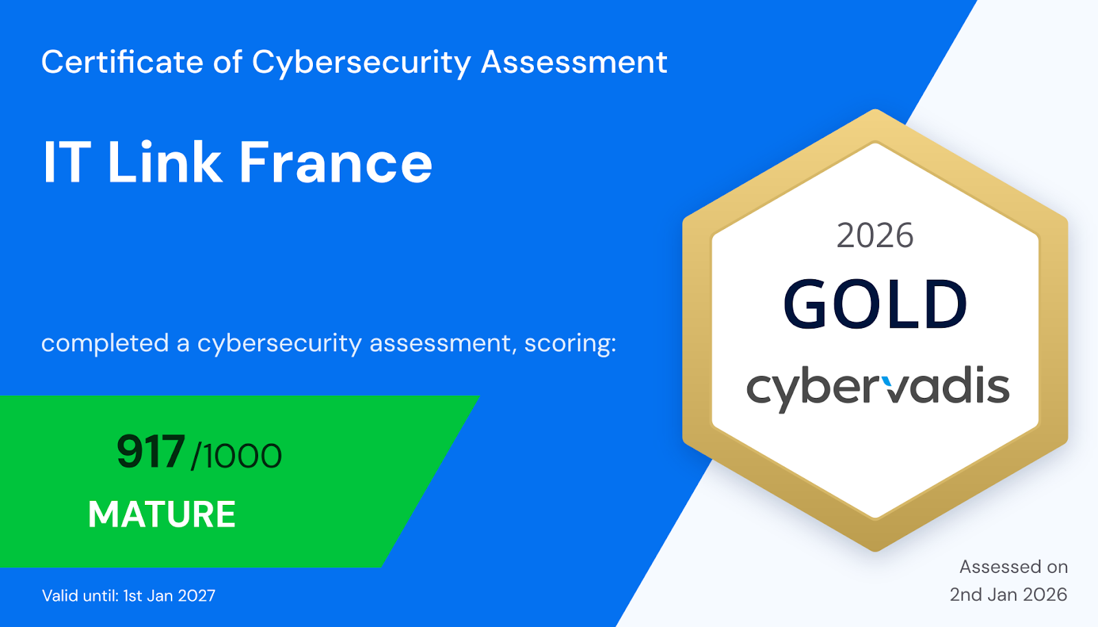 IT Link France vient d’obtenir, pour la deuxième fois, la certification CyberVadis au niveau Gold.